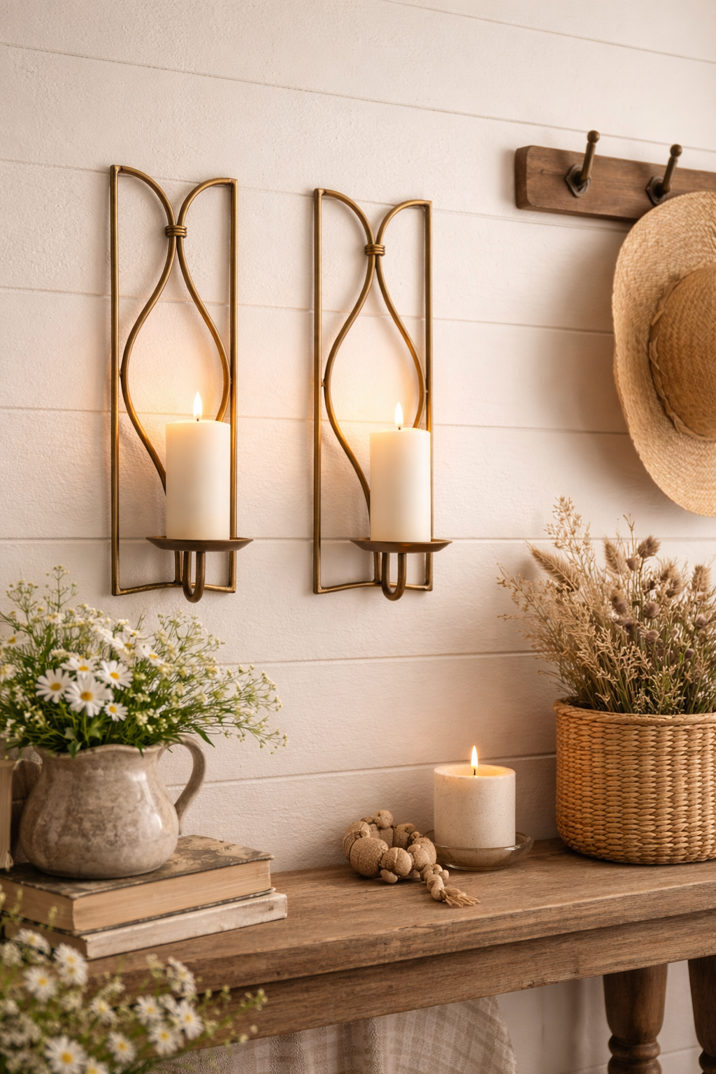 Bronze Gold Set of 2 Candle Wall Sconces