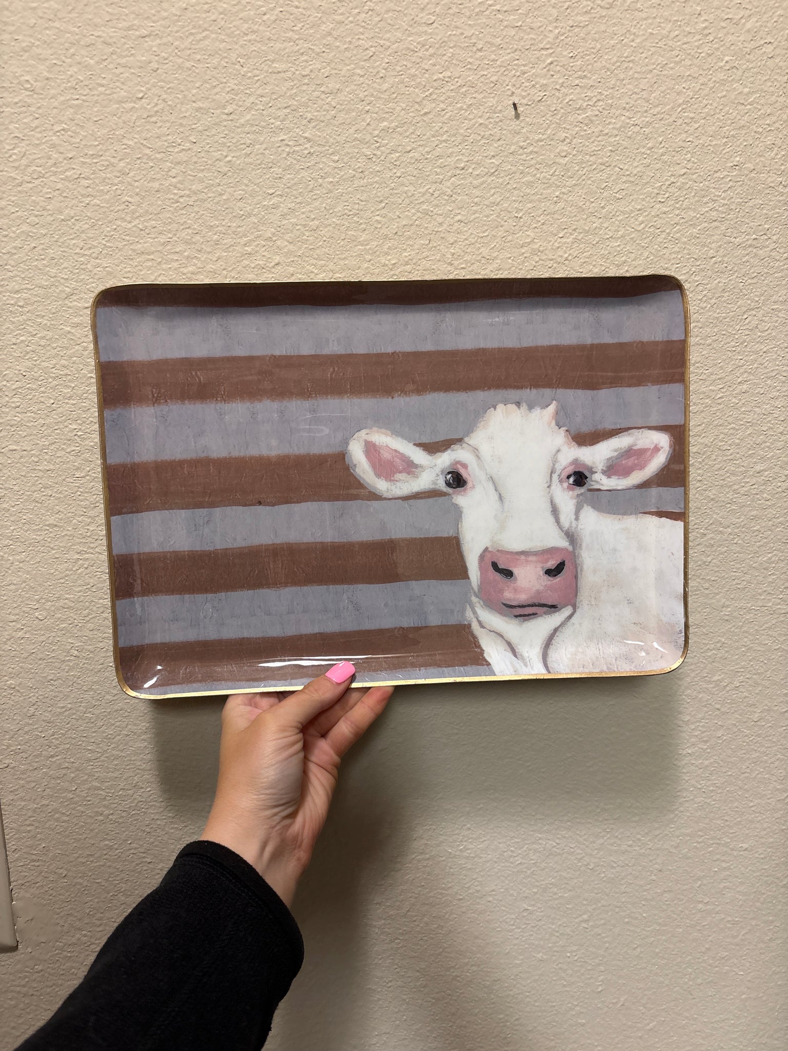 Cow Stripe Gold & White Rectangular Farmhouse Decorative Tray