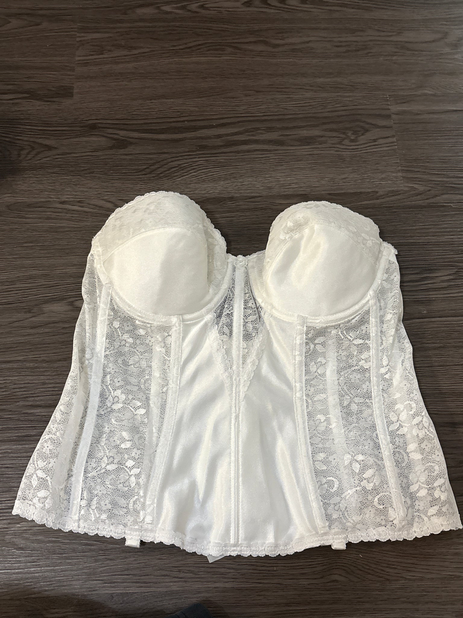 40B Carnival Vintage Union Made White Lace Bustier